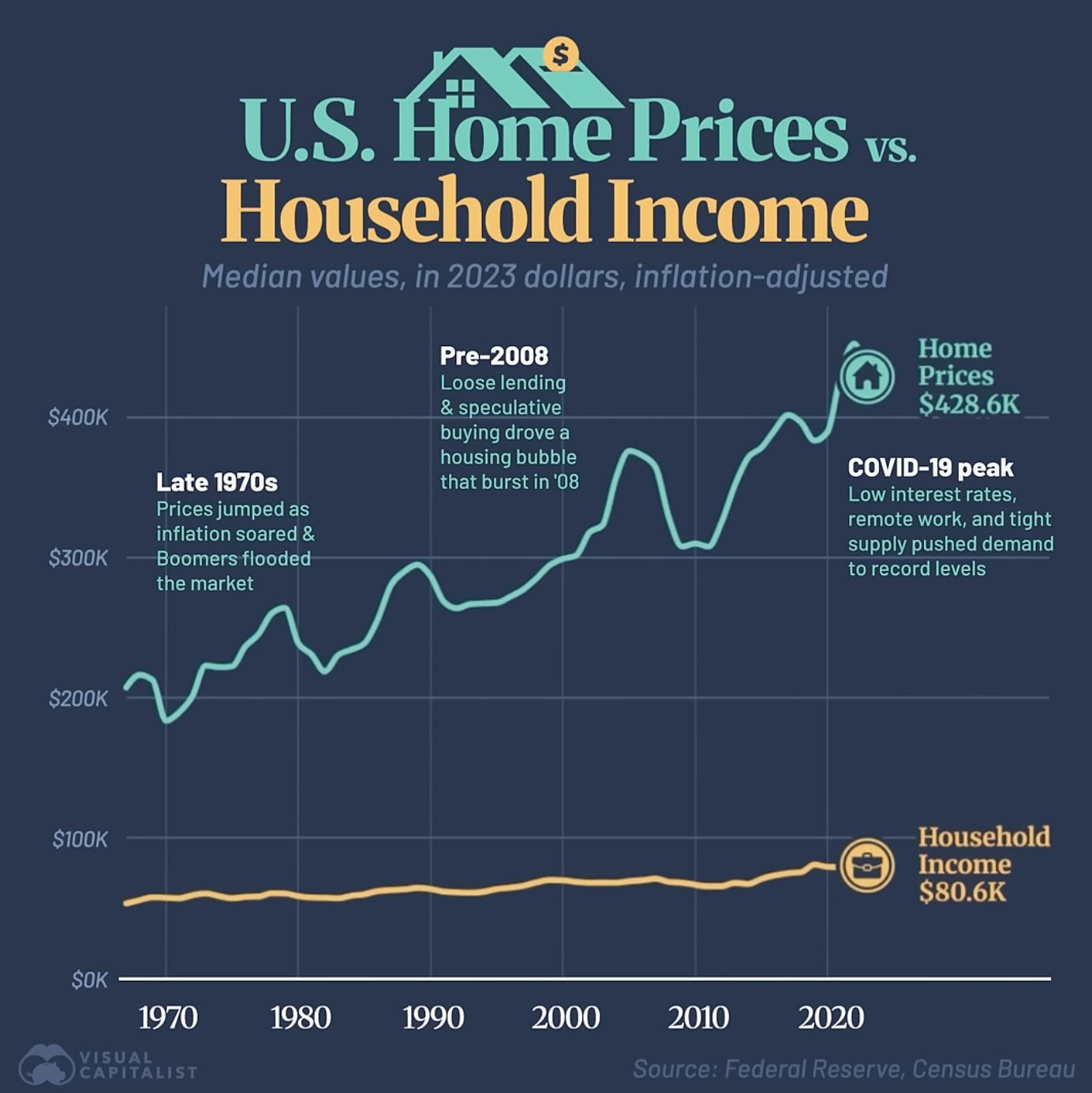 Throughout much of the twentieth century, this model worked well. For many families, home equity became the central pillar of household net worth and, in practice, the primary mechanism for long-term savings. Previous generations were often able to purchase homes earlier in life, service mortgages comfortably, and benefit from decades of rising prices and inflation eroding the real value of fixed-rate debt. This created a powerful financial tailwind that shaped expectations about how wealth was built in America.